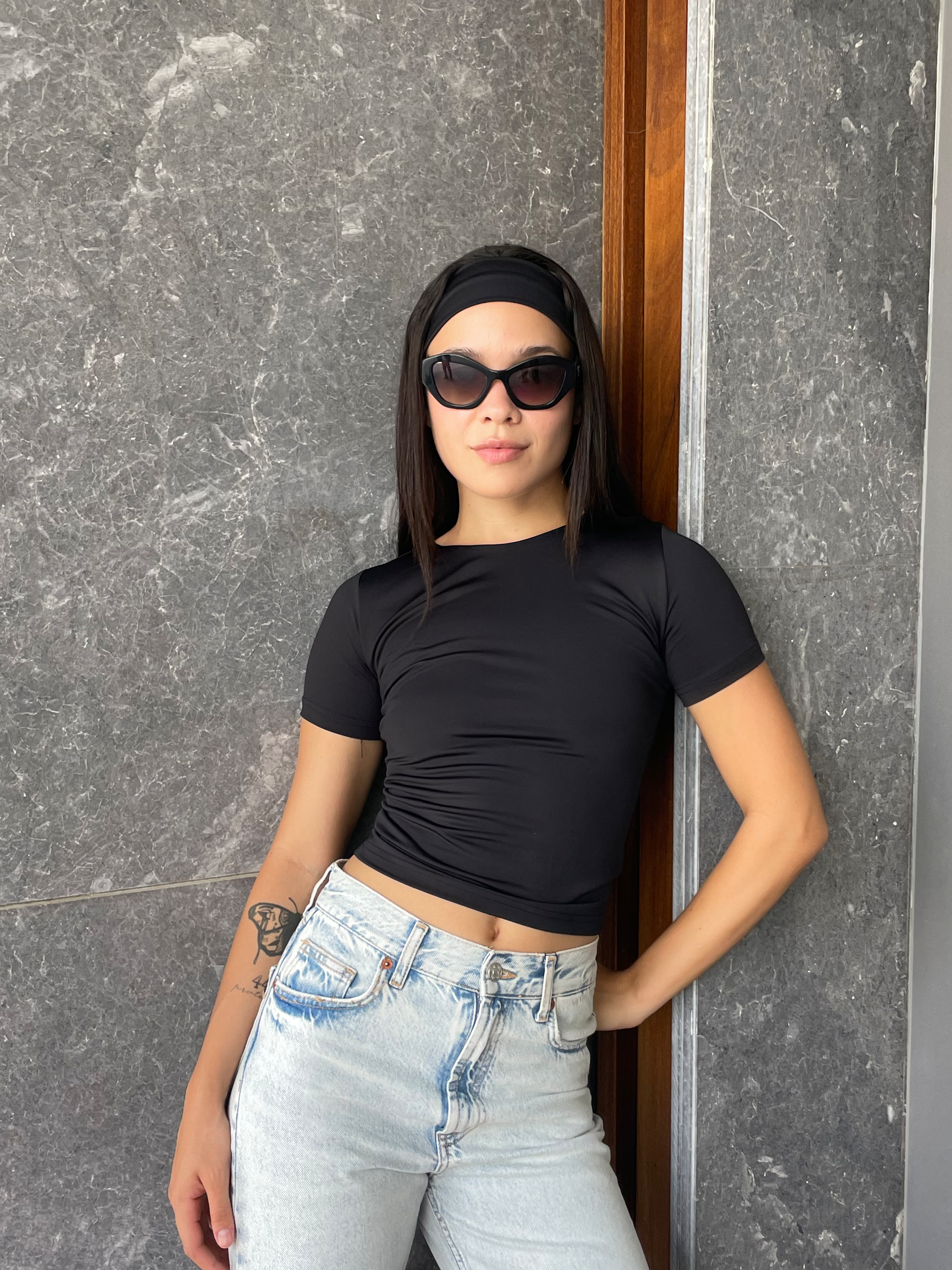 Short-Sleeved Double Layered Basic Top.